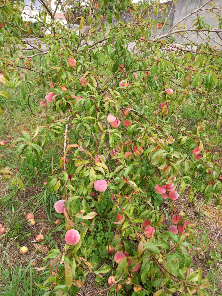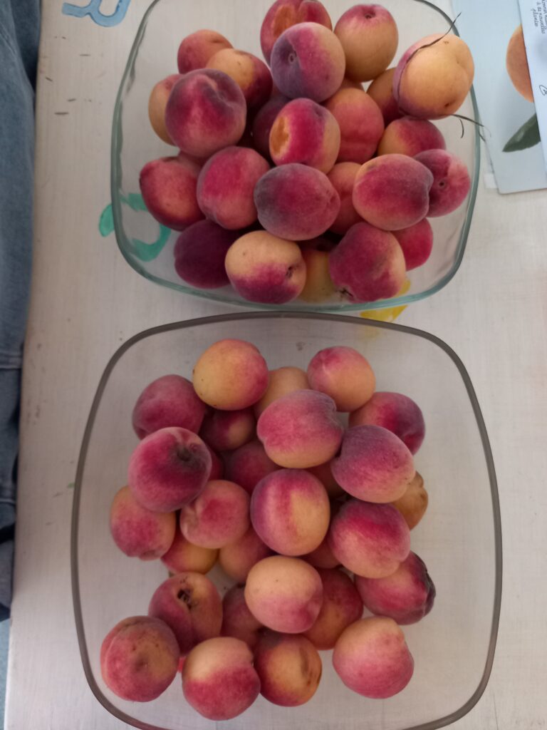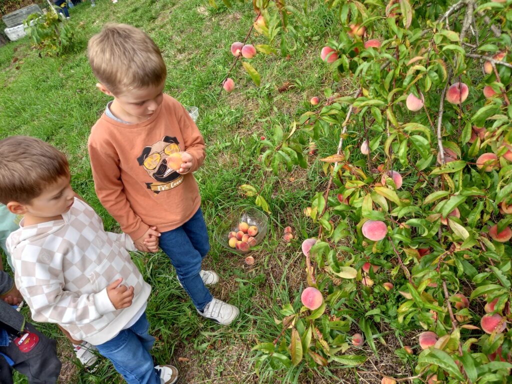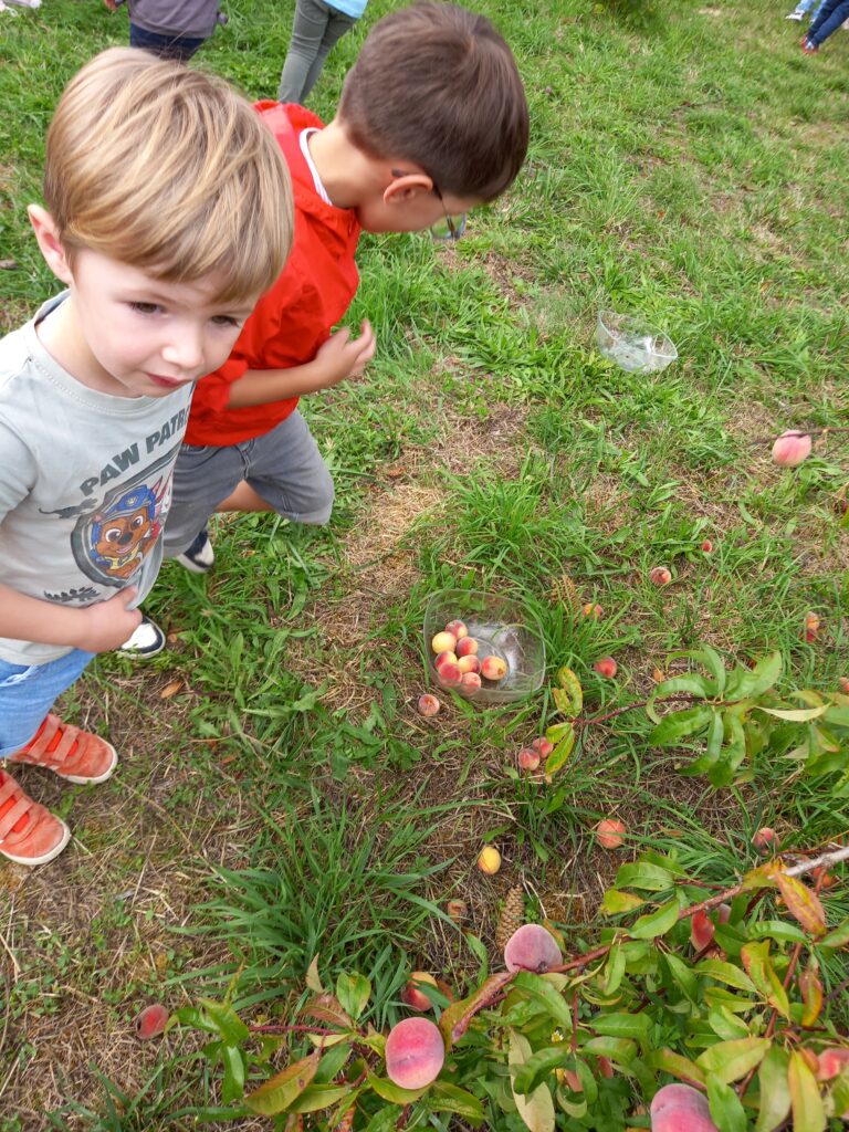 Ensuite nous allons voir les pêchers dans le jardin . On va ramasser les fruits ..