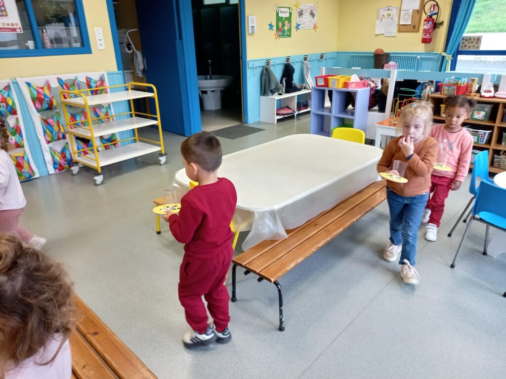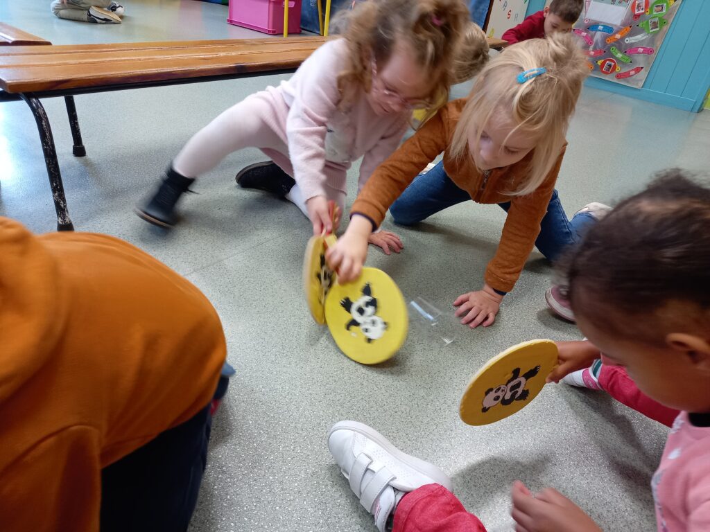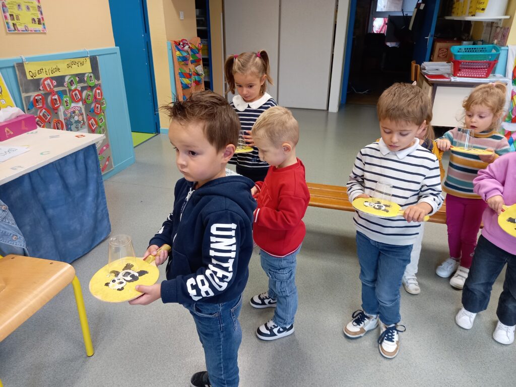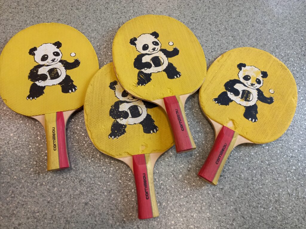 A la maternelle jusqu’en octobre c’est initiation au ping pong … avec des raquettes, des balles mais aussi des gobelets plastiques …