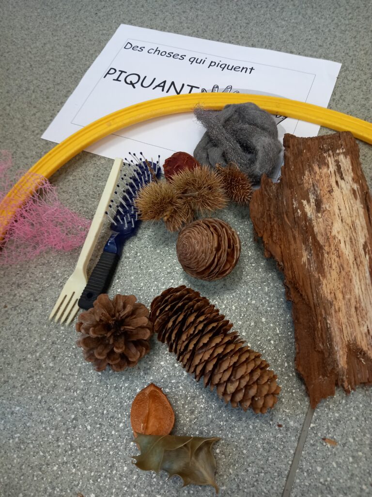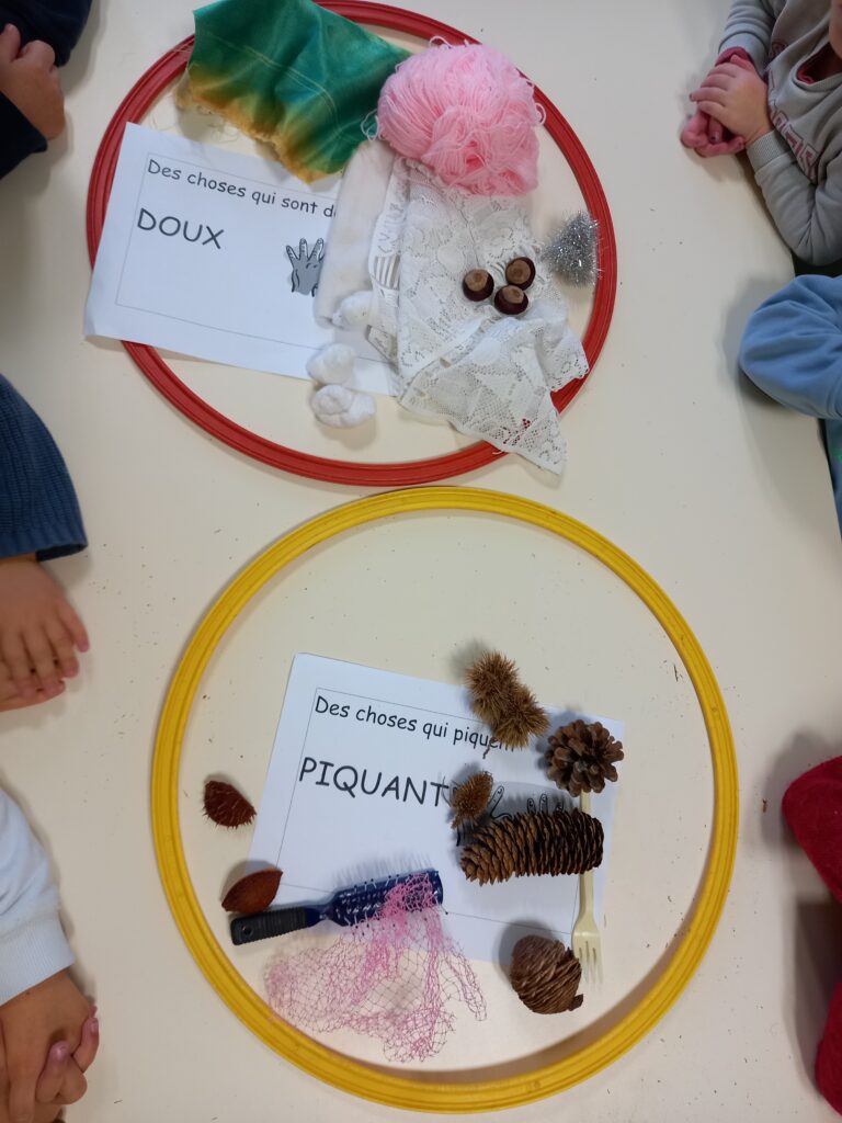 ce qui nous a donné l’idée de toucher des choses … « doux » ou « rugueux ».. pour faire du tri..