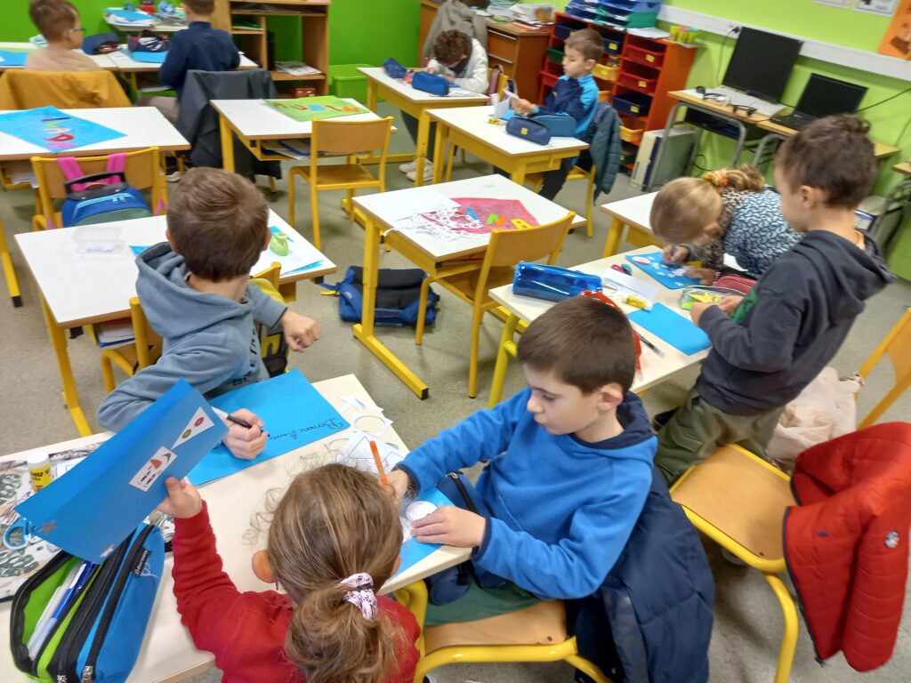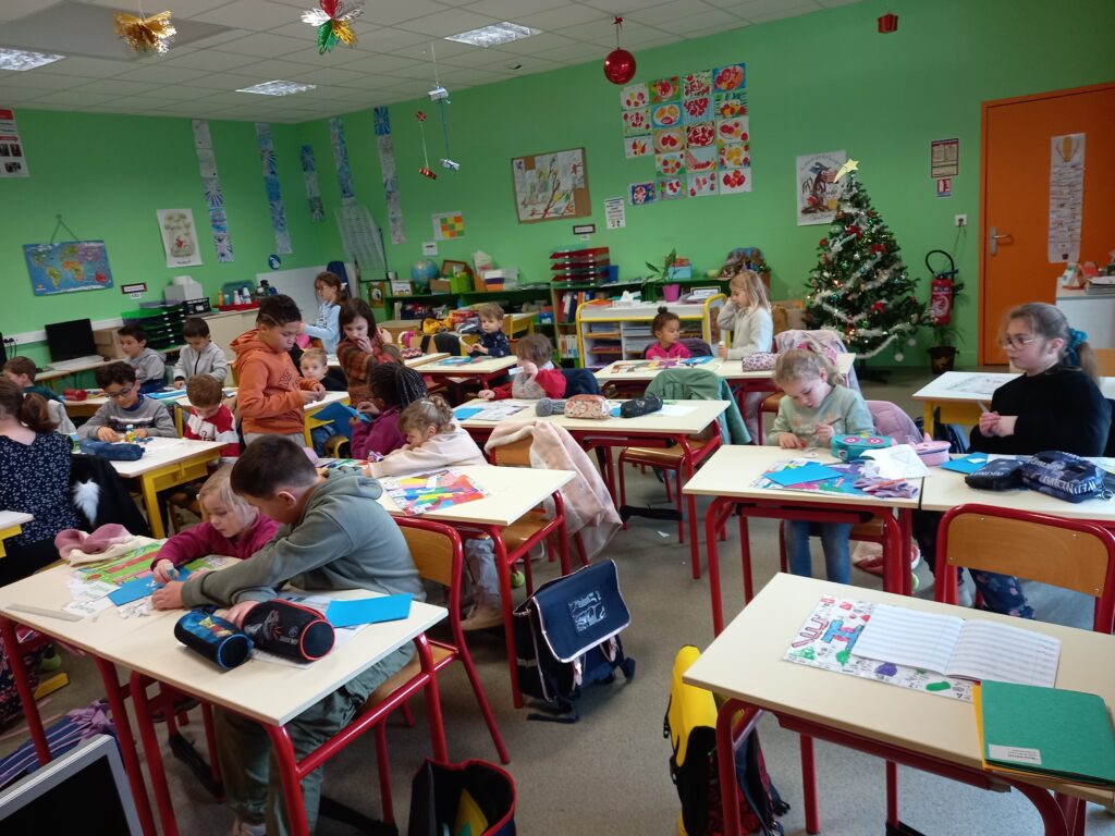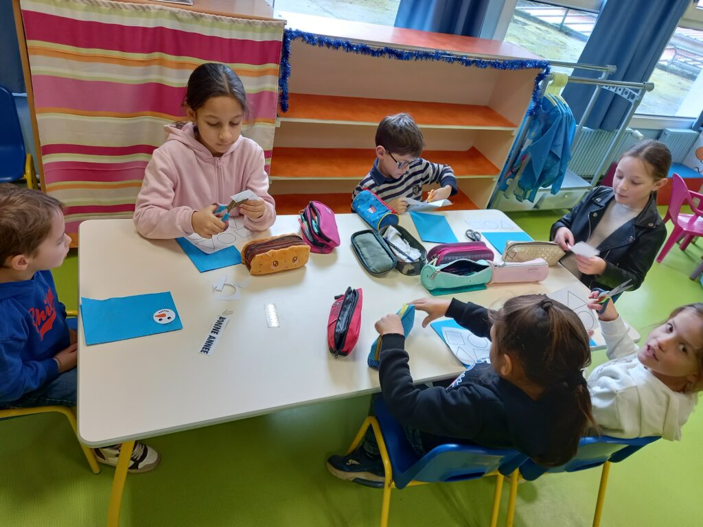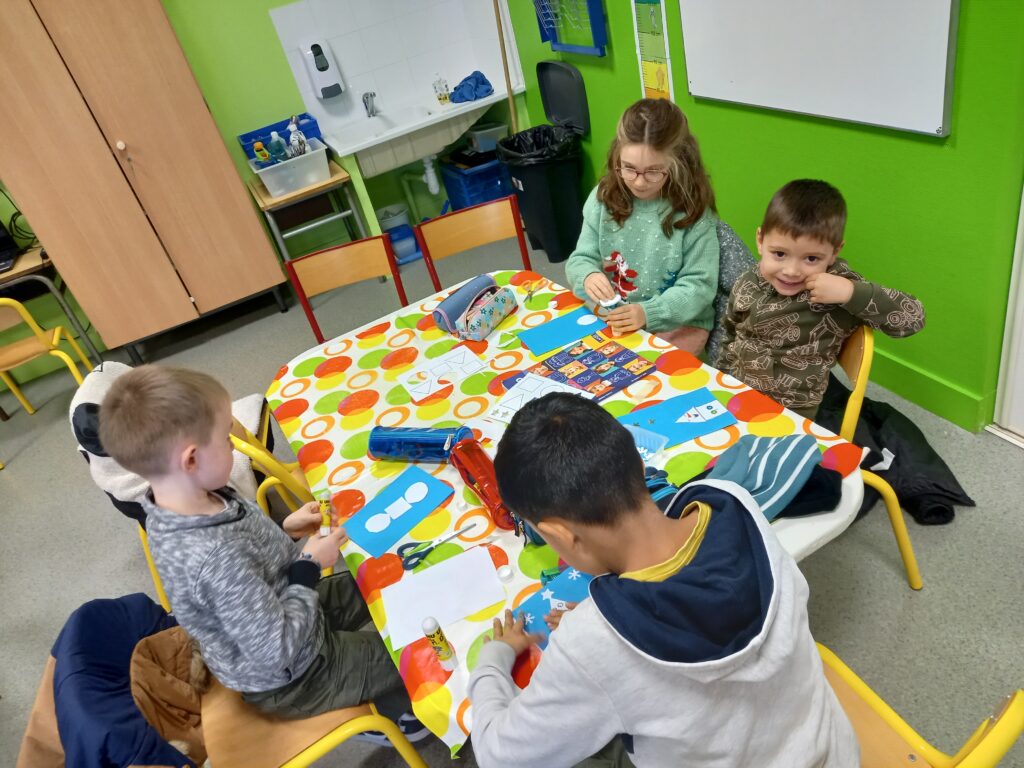 Voilà le thème de cette première rencontre … Chaque enfant va réaliser une carte de voeux pour son protégé , pour son ange gardien …On se souhaite une bonne année, on renforce les liens qui nous unissent et on développe l’entraide pour la réalisation de la carte par les plus petits !
