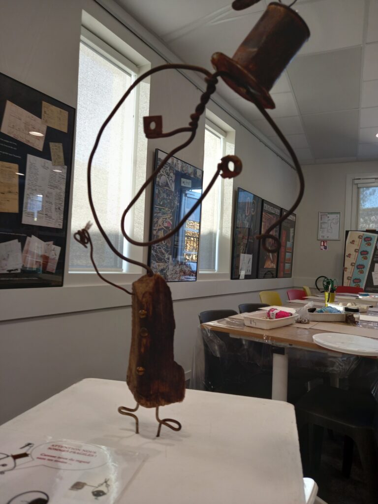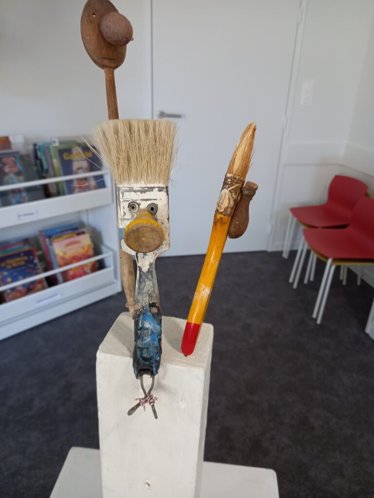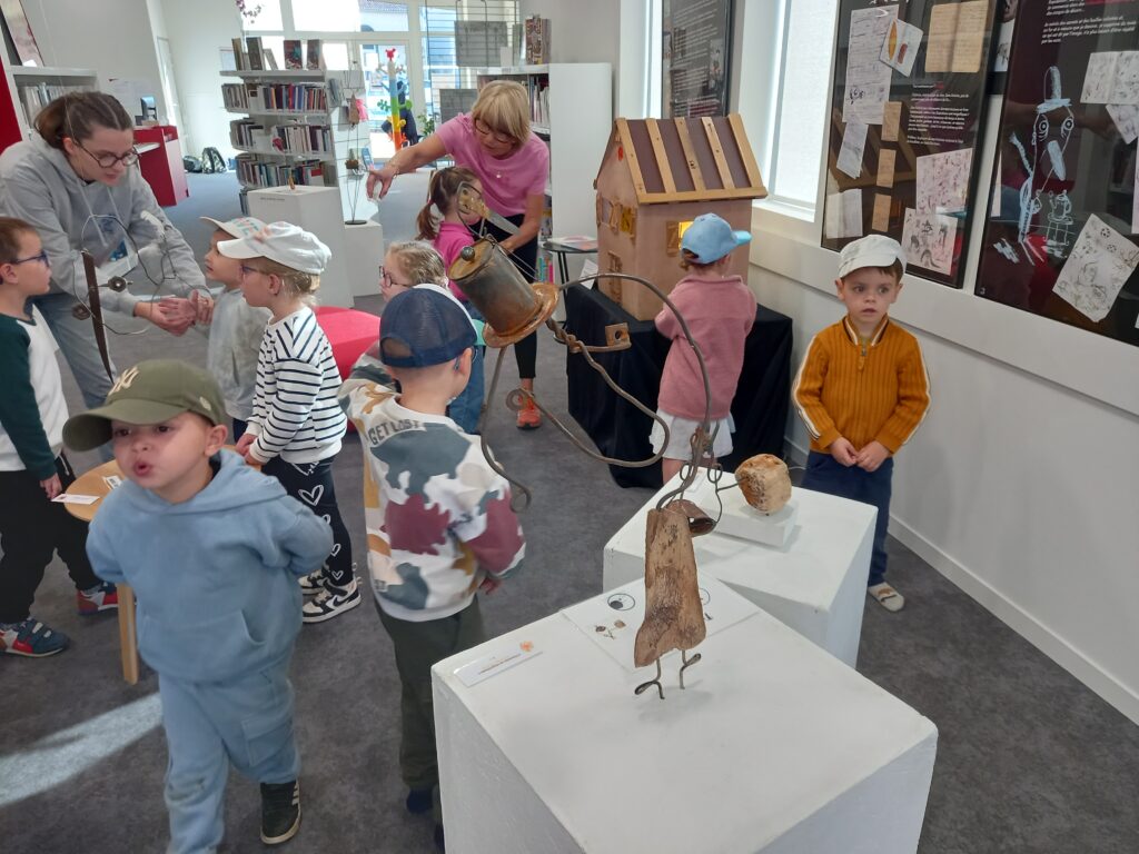Le matin RDV à la bibliothèque avec les animatrices (réaliser un collage comme les œuvres de Christian voltz) après avoir observé ses oeuvres .