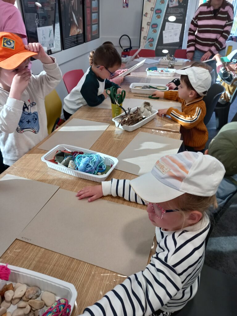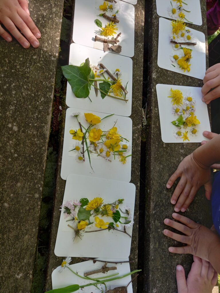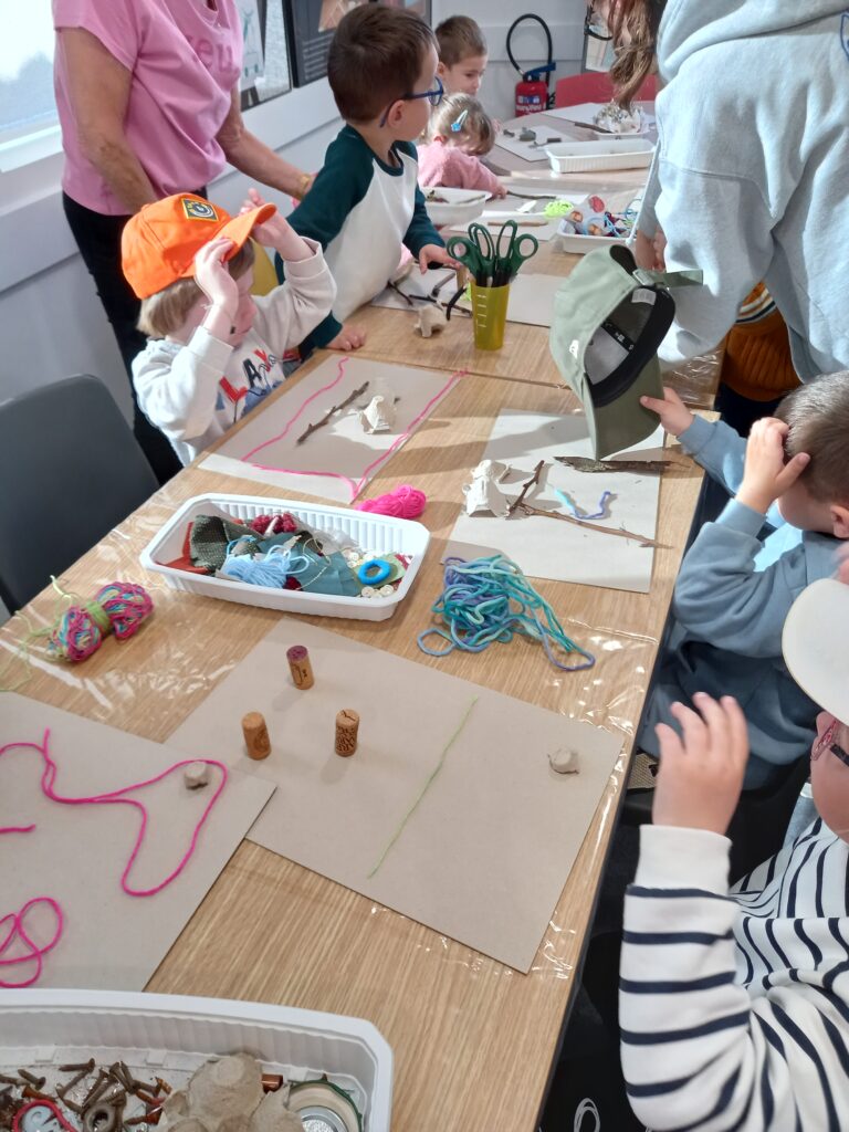 après-midi en plein air derrière la salle de sports …une activité (balade et collage sur un support de matériaux naturels avec double face)..
