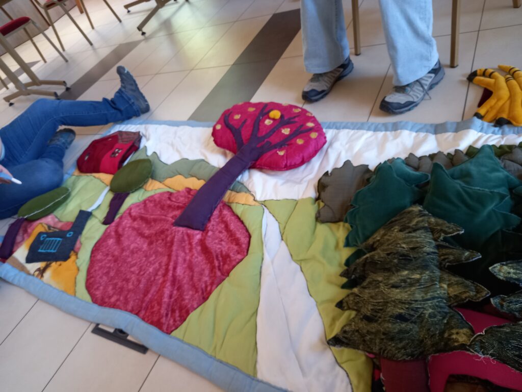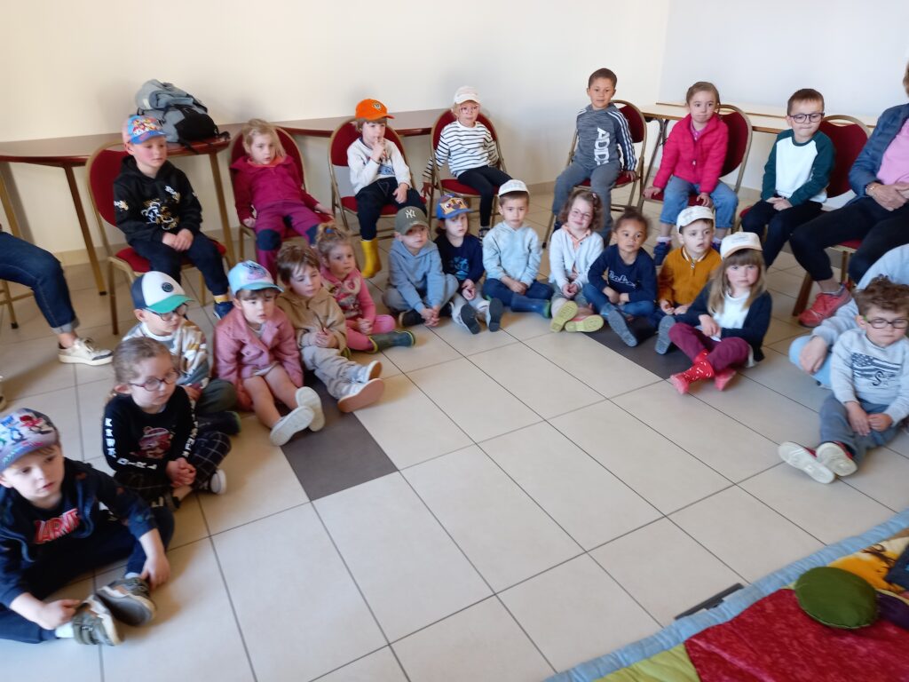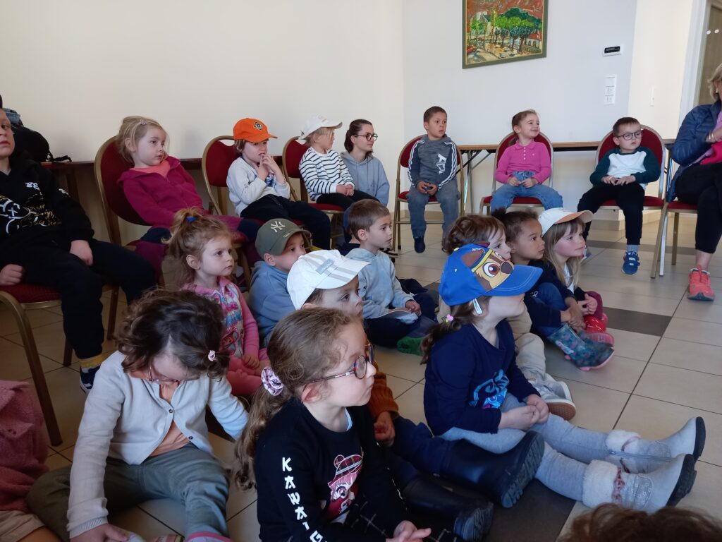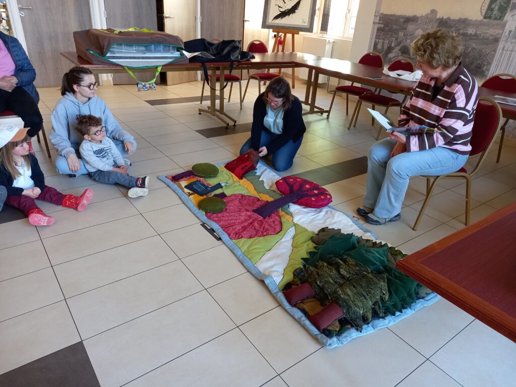 puis on va dans la salle du conseil municipal pour des raconte tapis . Annie en profite pour lire une histoire « Héléna Ivan et les oies «
