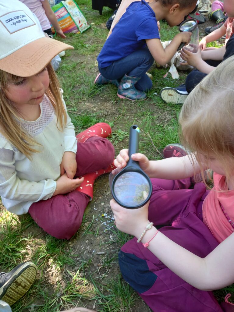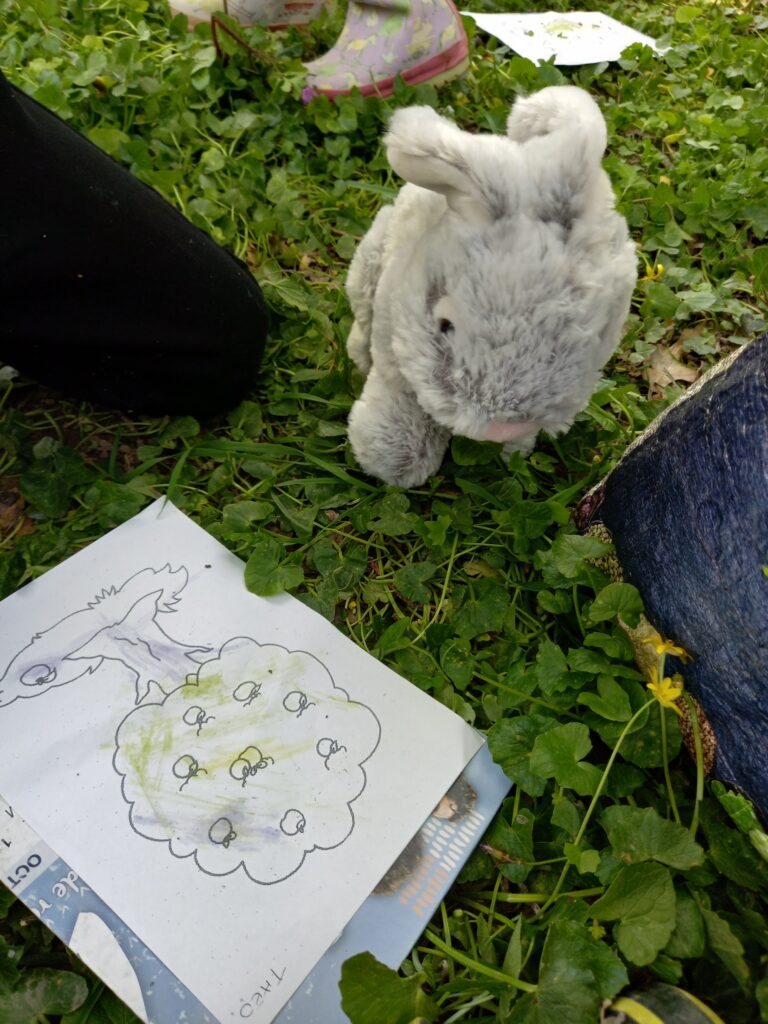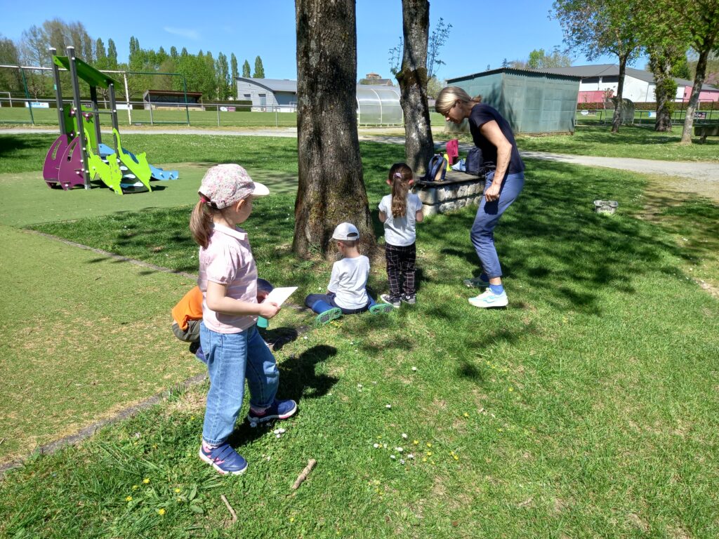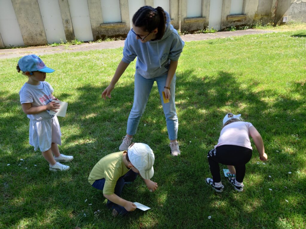 et on continue avec une activité avec la cicadelle (animateur) . Nous rencontrons Câlin le lapin qui nous aide à trouver plein de petites bêtes .. avec des boites et des loupes !