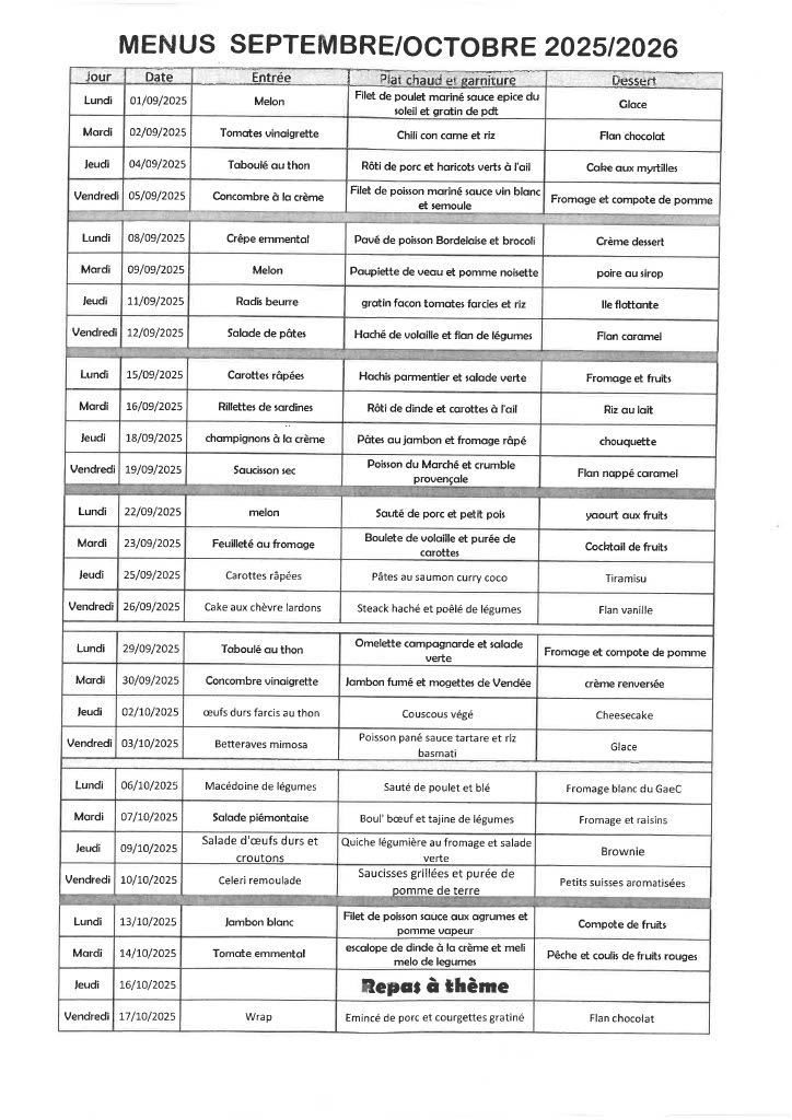 Ci-dessous, vous trouverez les menus pour les mois de juin 2025.